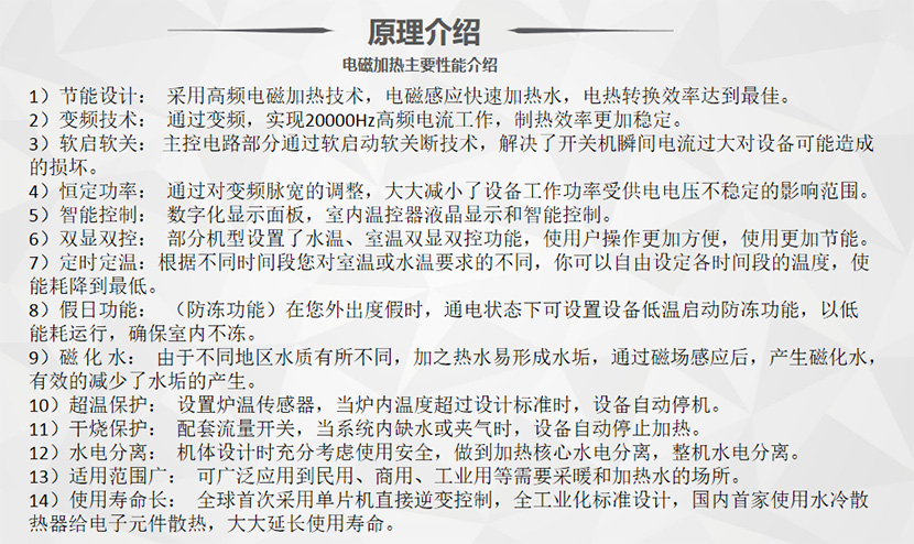 6、运行保养费用低,磁化水胆不结构,功率不衰减,不会随年限的增长运行费用,综合运行费用比传统电热低30%--40%。