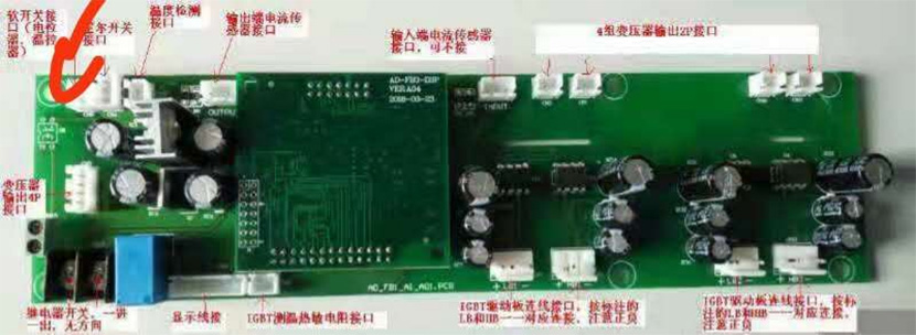 步骤五:通电调试。用夹表量进线电流(A)对应功率工作电流,工作频率在范围内没有,一般工作频率9-13KHZ之间。频率高,电流大,加线圈匝数,反之。电感量只是应用的其中一个参数而已,具体要实测工作频率和电流,通过增减线圈匝数来匹配功率,加热温度要求高的感量适当减小,工作频率在11-28KHz范围内,保持加热到所需最高温度时频率不低于11KHz(工件温度升高时等效串联阻抗R上升,RLC的谐振频率会降低, 同理R上升,母线电压不变的情况下电流有所下降是正常的)